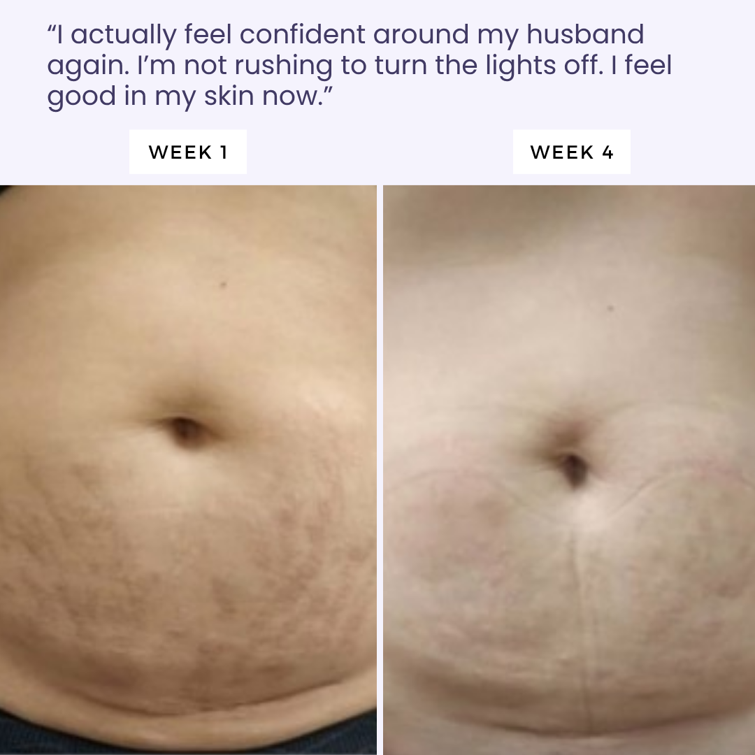 Moms noticed their stretch marks fade in color and appear less defined, revealing smoother, more even-toned skin across their belly.