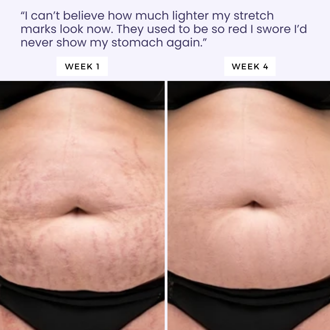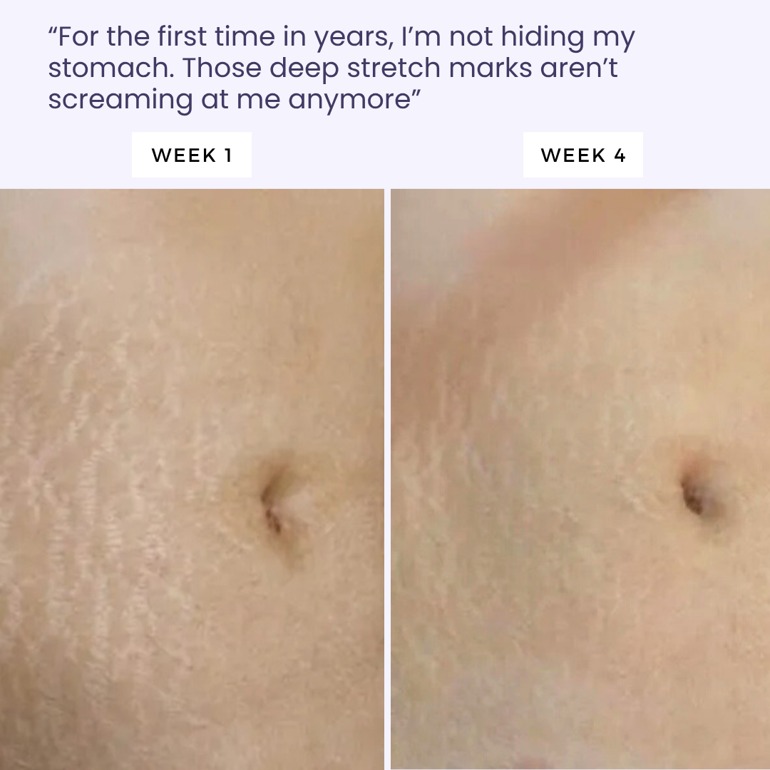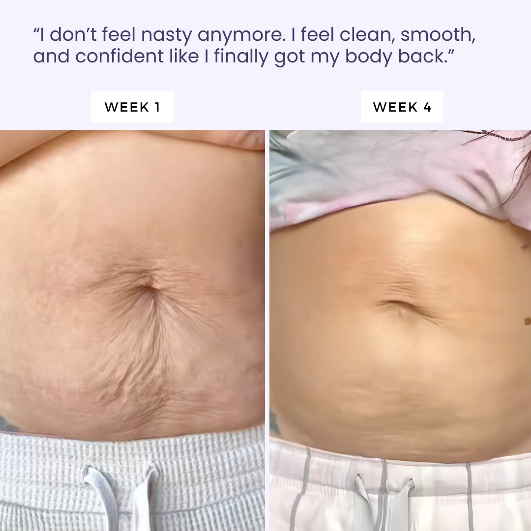 Most customers notice softer, firmer skin in the first 2–3 weeks. Stretch marks fade gradually, with best results at 90 days of consistent use. Think of it as a daily ritual that works while your body heals — each day bringing you closer to the confidence you deserve.