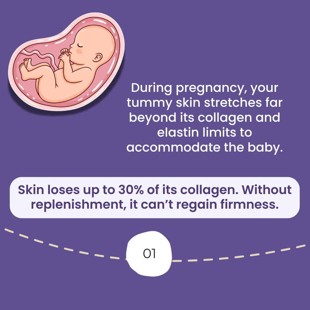 Yes. Clinical studies on Silybum marianum extract (SME) show significant increases in collagen III (28%) and hyaluronic acid (36%) production, helping restore skin firmness and elasticity. 87% of moms in user trials reported visibly tighter skin on their tummy.